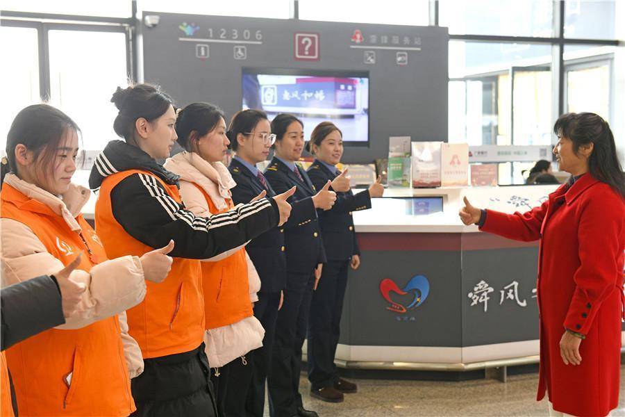 志愿者积极备战2026年春运。2026年1月29日,安徽淮南南站大学生志愿者积极备战2026年春运。春运前夕,各地铁路部门招募大学生志愿者,组织职工、大学生志愿者开展旅客服务技能培训,全力以赴备战即将到来的春运。(陈彬)