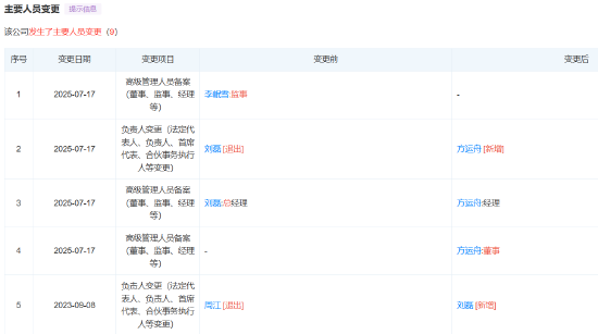 此前,6月,广州合达天下汽车销售服务有限公司发生工商变更,刘磊卸任法定代表人、董事、经理,由方运舟接任。